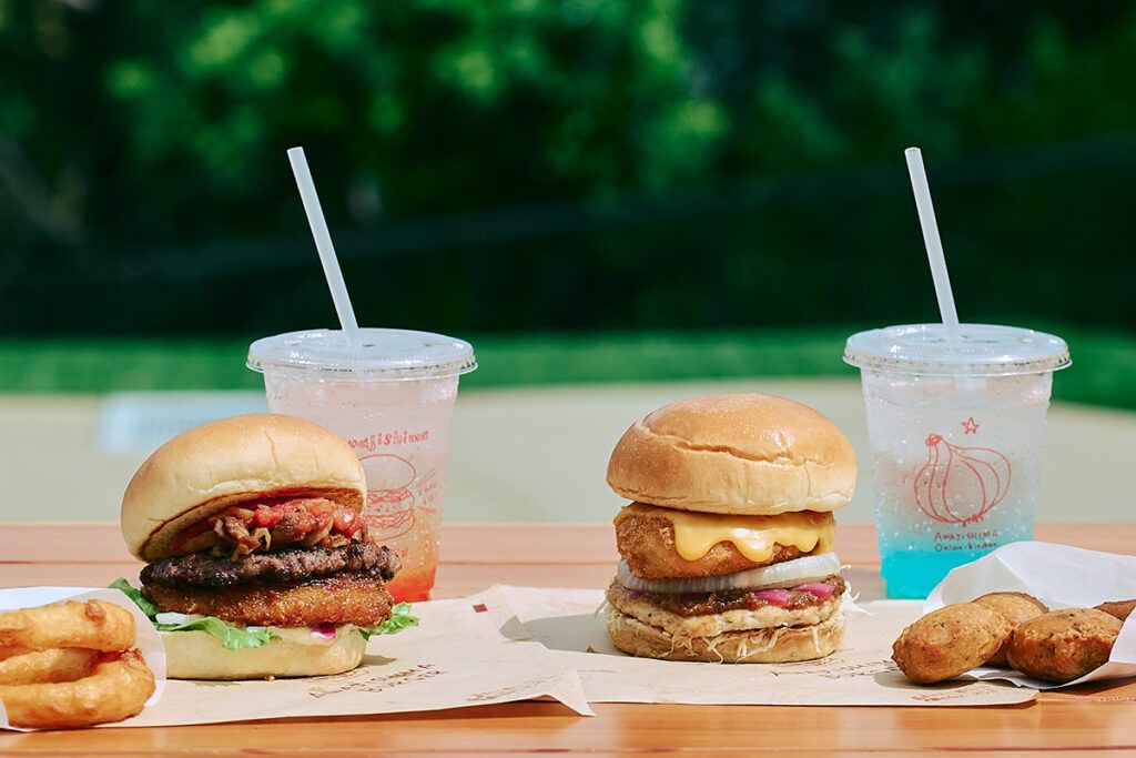 ご当地バーガーグランプリ1 位・2 位を獲得した「あわじ島バーガー」を、さらに進化させた「オニオンビーフバーガープレミアム」と「オニオングラタンバーガープレミアム」をメインに味わえるバーガーショップです。さらに今回はすべてのバーガーが新作!淡路島産の素材をふんだんに使い、見た目も味も満足感たっぷりで、ここだけでしか食べることができません!