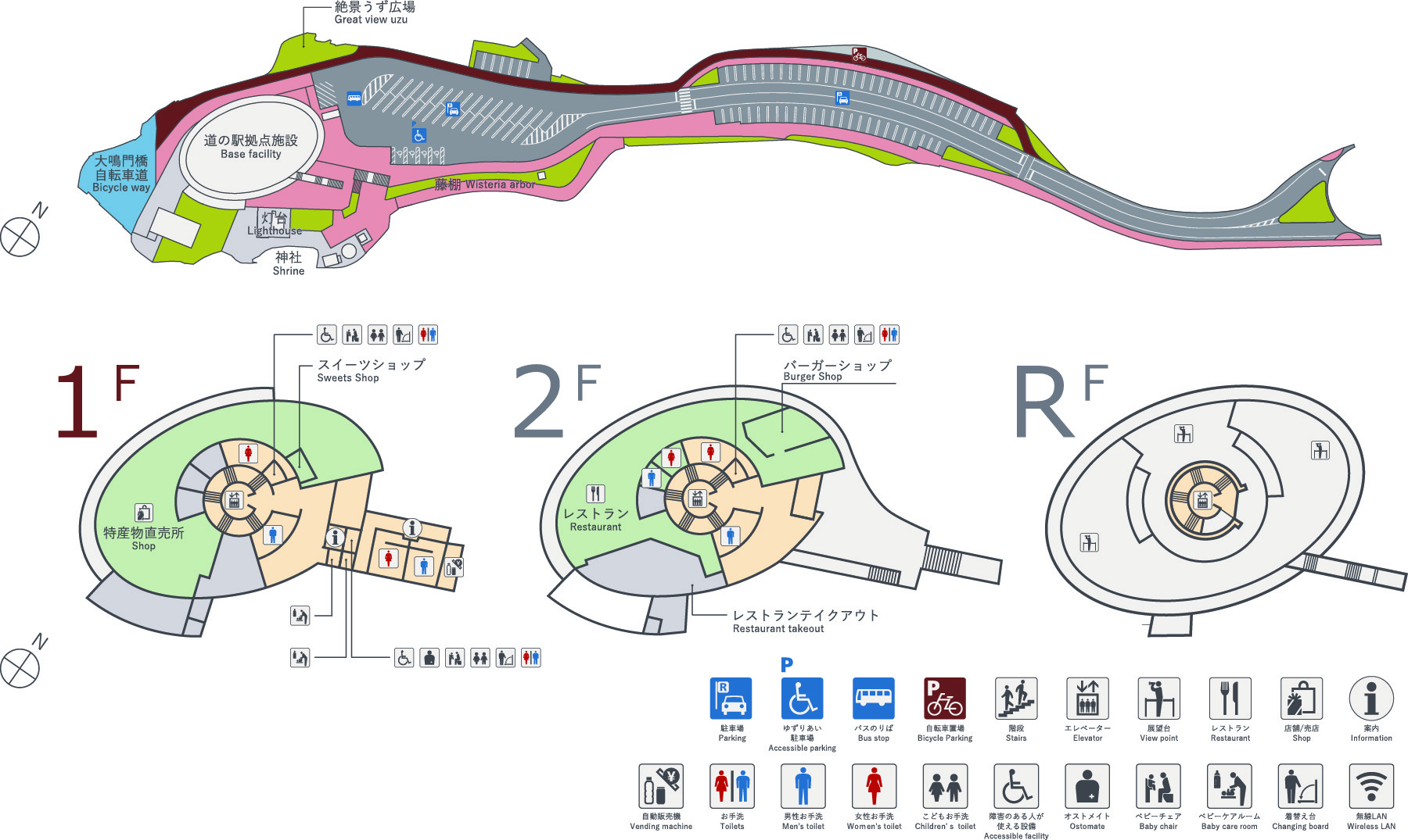 東京(羽田),福岡飛行機約1時間20分徳島空港『オニオンバス』 約54分陸の港西淡UZULOOP Free Shuttle Bus(うずループ無料シャトルバス)道の駅うずしお
