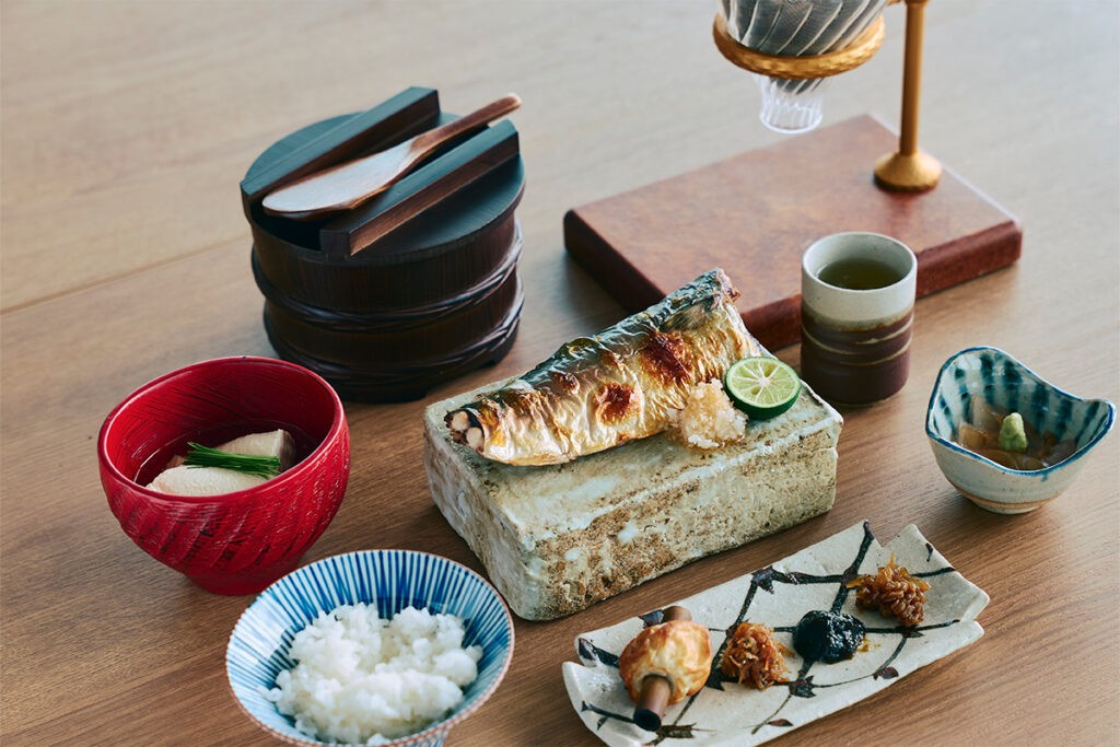 うずの幸から厳選される年間100 種類の旬の食材を活かした料理を、朝食とランチで味わえる食堂。メインは囲炉裏で焼き上げた旬魚、巾着炊き込みご飯、郷土料理の鯛そうめんなど、うずの幸を堪能いただける定食です。この他にも鳴門海峡近海の鮮魚をはじめ、淡路島特産の淡路島産玉ねぎなどの農産物、淡路牛などを取り入れた料理を提供予定です。