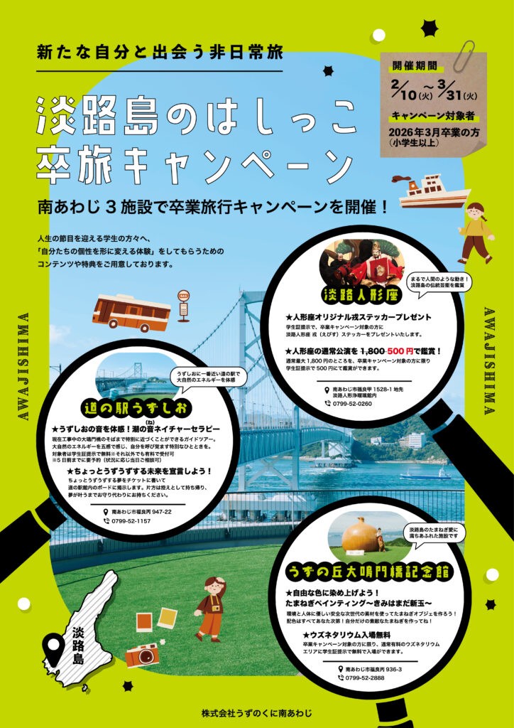 【卒業記念】淡路島のはしっこ卒旅キャンペーン開催!2026年2月10日(火)~3月31(火)まで!