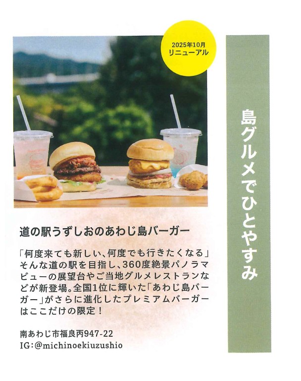 2025年10月リニューアル 道の駅うずしおのあわじ島バーガー
