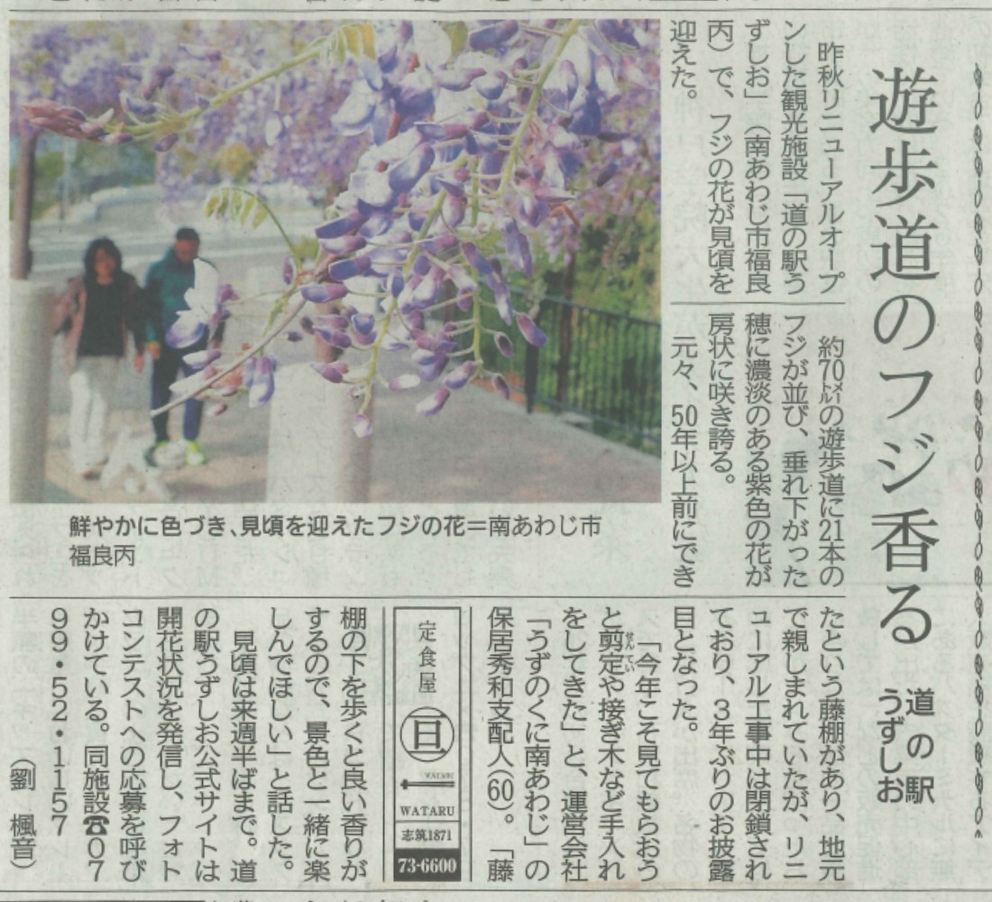 2026年4月20日(月)の神戸新聞に「道の駅うずしお 藤の棚」が紹介されました!